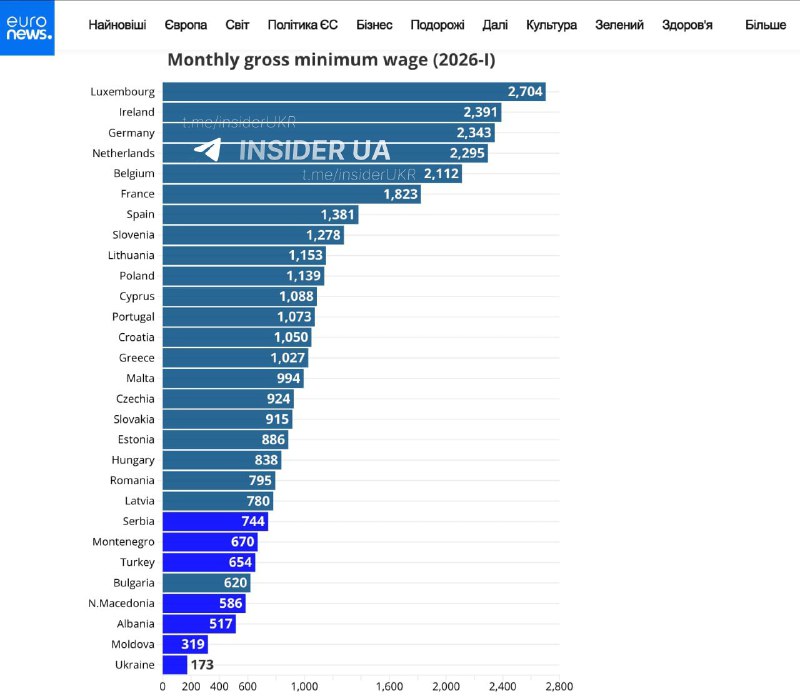 Оприлюднено оновлені дані щодо країн Європи з найвищими рівнями мінімальної заробітної плати. Статистика демонструє значний розрив у доходах громадян залежно від регіону проживання та економічної стабільності держави.