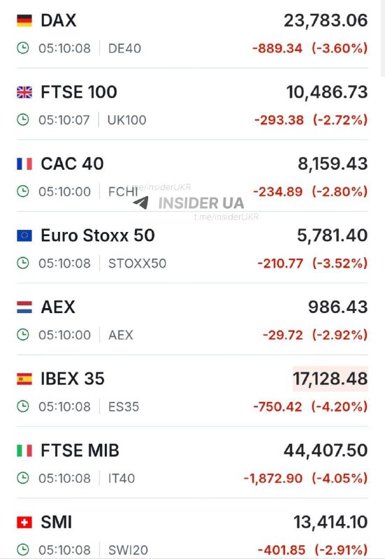 Європейські фондові ринки продемонстрували стрімке падіння через побоювання інвесторів щодо масштабного конфлікту на Близькому Сході. На фінансових майданчиках панує невпевненість, що призводить до розпродажу акцій ключових компаній.