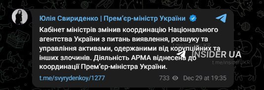 Кабінет Міністрів України вніс зміни до порядку координації діяльності Агентства з розшуку та менеджменту активів (АРМА). Відтепер робота відомства буде спрямовуватися та координуватися безпосередньо Прем'єр-міністром України.