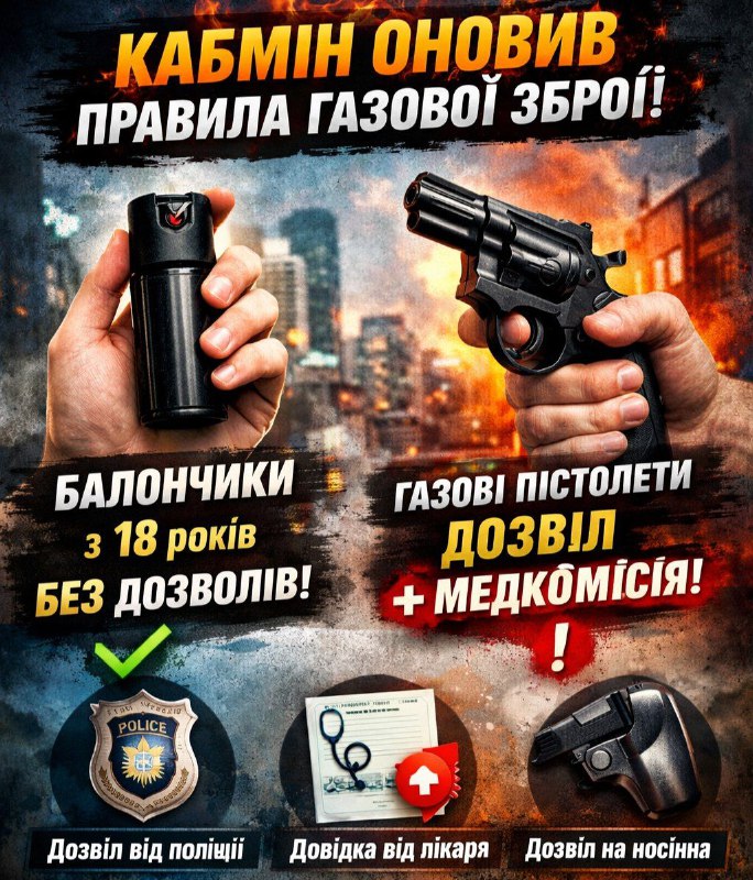 Кабінет Міністрів України вніс зміни до порядку придбання та використання газових балончиків. Нові правила спрямовані на регулювання засобів самооборони та спрощення доступу до них для цивільного населення.