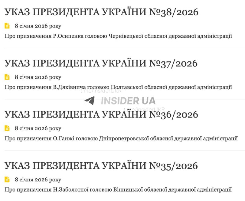 Президент України Володимир Зеленський підписав укази про призначення нових керівників обласних державних адміністрацій. Кадрові зміни торкнулися Вінницької, Дніпропетровської, Житомирської та Миколаївської областей.