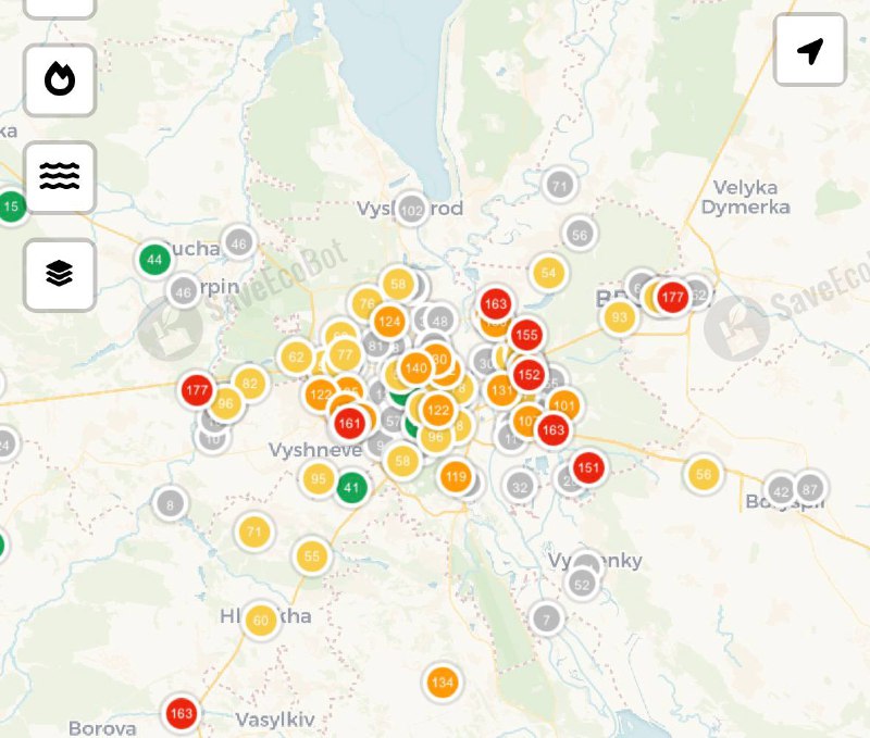 У столиці України спостерігається значне погіршення якості атмосферного повітря. Мешканцям рекомендують обмежити перебування на вулиці та зачинити вікна до покращення синоптичної ситуації.
