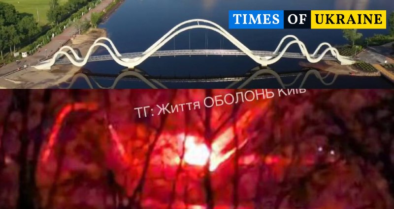 У столиці зафіксовано пожежу на відомому пішохідному мосту на Оболоні. На місці події працюють рятувальні служби, з’ясовуються причини займання та масштаби пошкоджень нової пам'ятки міста.