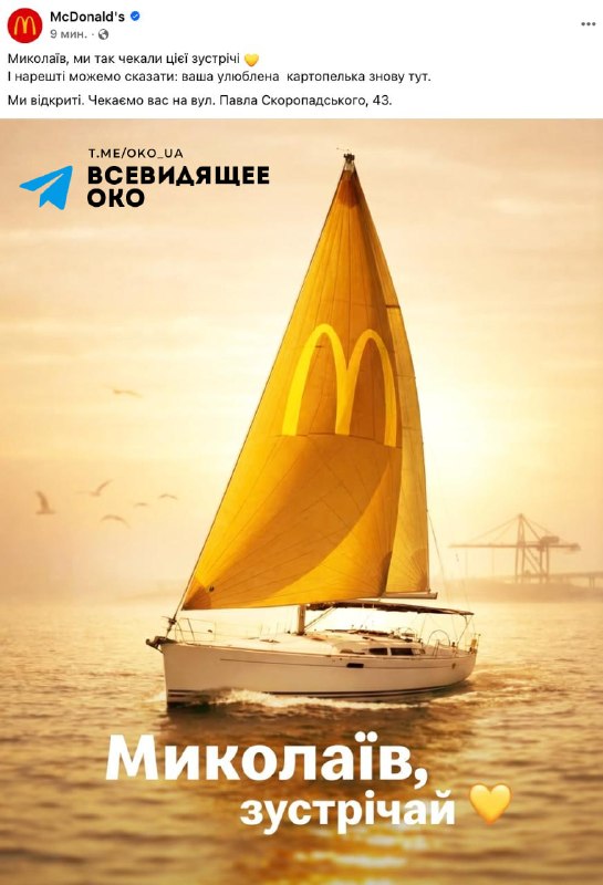 Голова Миколаївської ОВА Віталій Кім повідомив про плани повернення мережі McDonald's до Миколаєва. Це стане важливим сигналом відновлення економічного життя міста після тривалої паузи через безпекову ситуацію.