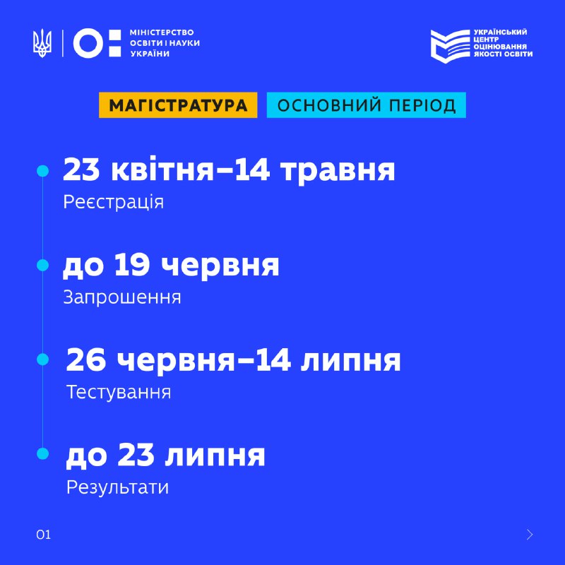 Міністерство освіти і науки України оприлюднило ключові правила та терміни вступної кампанії до магістратури. Особлива увага приділяється результатам єдиного вступного іспиту (ЄВІ) та професійного випробування (ЄФВВ).