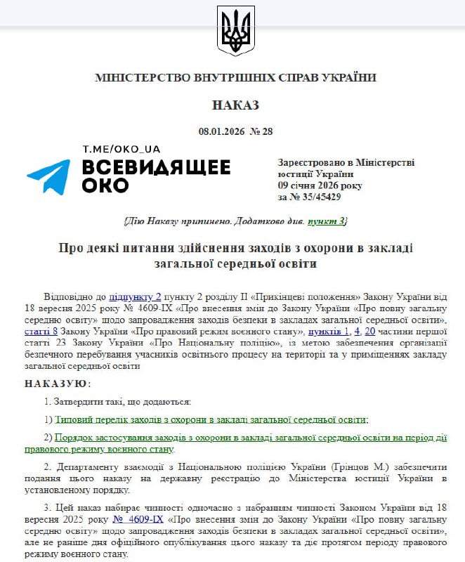 В освітніх закладах України запроваджують нові стандарти безпеки, що включають залучення професійної охорони та використання металодетекторів для перевірки учнів. Також планується встановлення систем відеоспостереження та тривожних кнопок для оперативного реагування на надзвичайні ситуації.