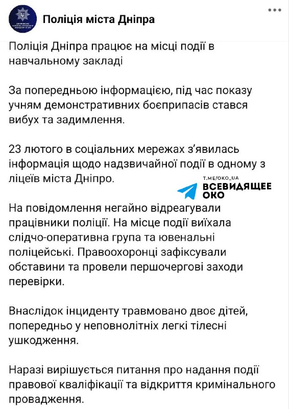 "Займається розслідуванням інциденту та затриманням підозрюваного."