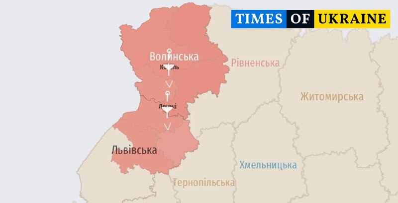 Повітряні сили зафіксували значну кількість ударних безпілотників у повітряному просторі України. Особлива увага зосереджена на Волинській області, де спостерігається рух групи дронів.