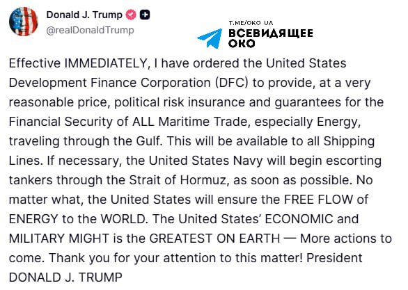 Дональд Трамп оголосив про захоплення іранського судна та заявив, що Сполучені Штати не знімуть блокаду Ормузької протоки до укладення нової угоди з Тегераном. Ці події вже призвели до зростання світових цін на нафту через побоювання щодо стабільності поставок енергоносіїв.