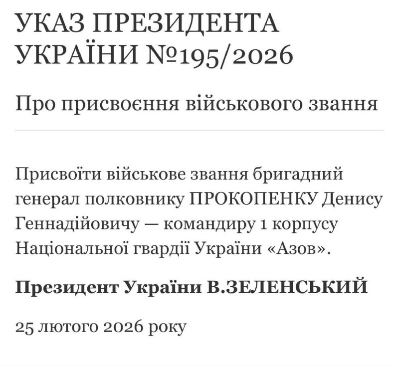 - Зеленський присвоїв військове звання бригадний ген...Лачен пише • 2/25/2026, 04:05 PM