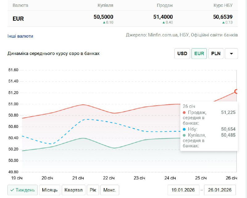 - Курс євро у найбільших банках України перевищив 51...Лачен пише • 1/26/2026, 09:07 AM