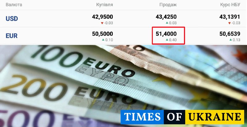Курс євро в Україні вперше перетнув позначку у 51 гривню 💶📈