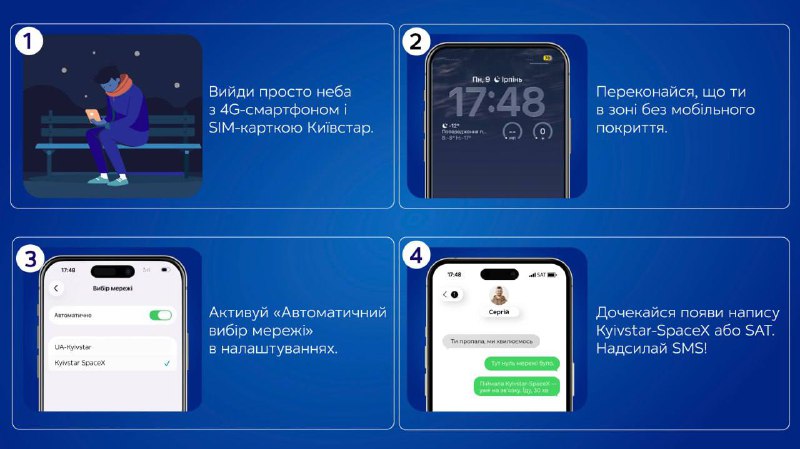 На перших етапах послуга дозволятиме обмінюватися текстовими повідомленнями, а згодом планується розширення до голосових дзвінків та передачі даних. Це суттєвий крок у забезпеченні безперебійного зв'язку по всій території країни.