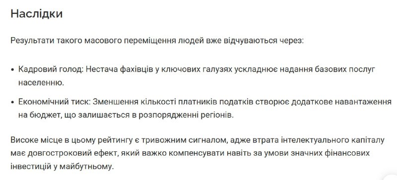 Держава намагається розробити програми для залучення людей назад, проте безпекова ситуація залишається головним стримуючим фактором. Втрата інтелектуального капіталу може мати довгострокові негативні наслідки для відбудови країни після війни.