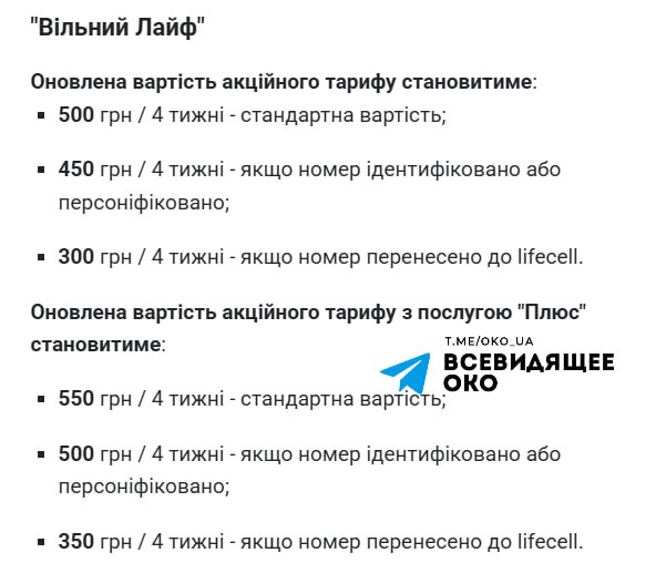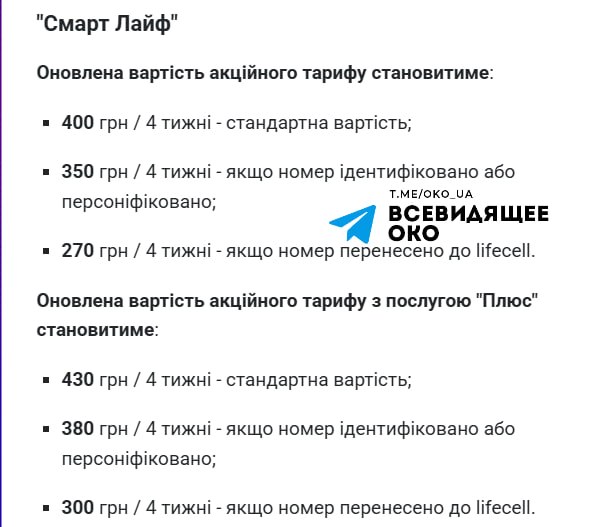 - Ціна на окремі тарифні плани може зрости до 550 грн.