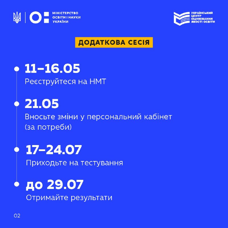 - Передбачено додаткову сесію для тих, хто пропустить основну з поважних причин.