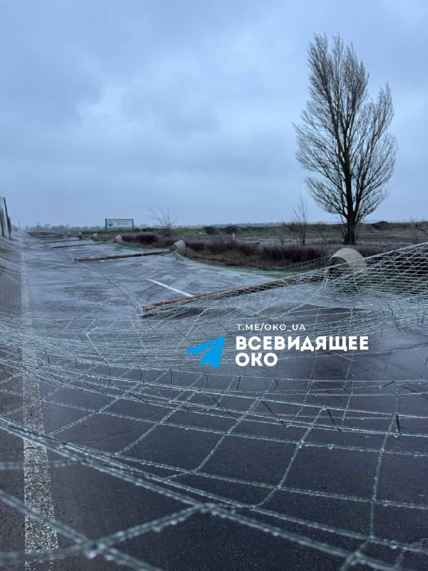 На місце події направлені відповідні служби для розчищення траси та відновлення цілісності захисних споруд. Влада закликає водіїв бути вкрай уважними на цій ділянці через загрозу з боку ворожих безпілотників, яка залишається високою попри пошкодження загороджень.