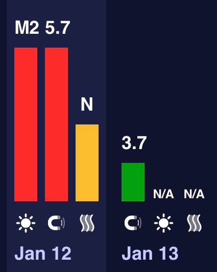 Науковці зафіксували потужний спалах на Сонці, який призвів до виникнення магнітної бурі інтенсивністю майже 6 балів за К-індексом. Це явище класифікується як помірно сильне, проте воно здатне викликати помітний вплив на навколишнє середовище та здоров'я населення.