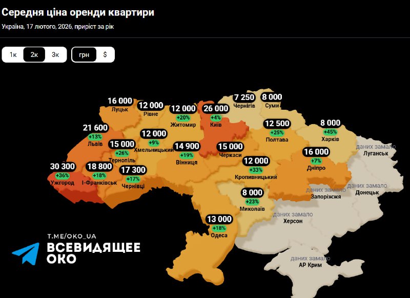 - Ціни знову зростають: скільки відсотків зарплати у...Всевидящее ОКО: Україна • 2/17/2026, 03:59 PM