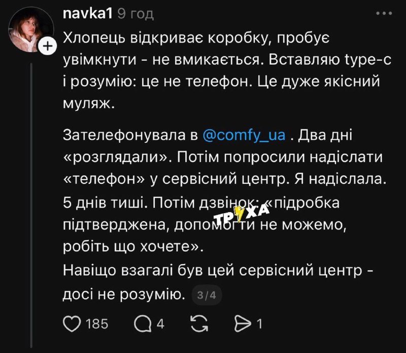 Хоча деталі інциденту уточнюються, користувачі припускають можливі проблеми з доставкою, автентичністю товару або сервісним обслуговуванням. Представники компанії Comfy поки що не надали офіційного розлогого коментаря щодо цієї конкретної ситуації.