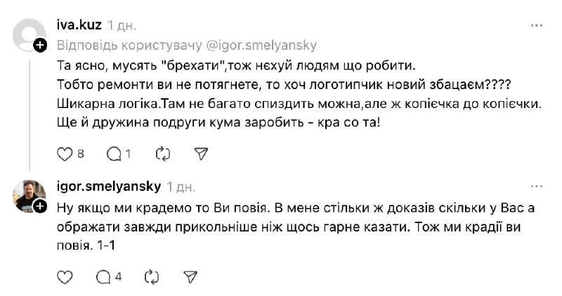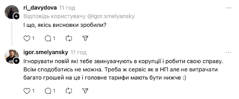Наразі офіційних коментарів від прес-служби «Укрпошти» або самого Смілянського щодо контексту всієї розмови не надходило. Проте інцидент уже завдав репутаційного удару керівництву поштового оператора в умовах підвищеної уваги до використання державних коштів.