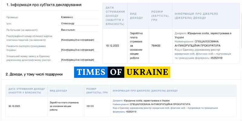- Олександр Клименко отримав понад 1 млн грн виплат під кінець року.