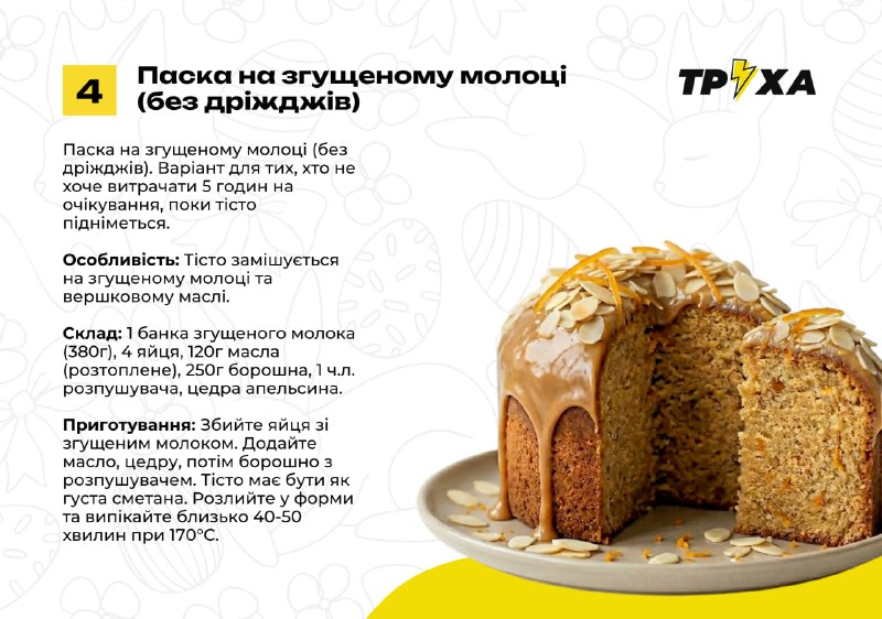 Серед запропонованих варіантів особливу увагу приділено рецептам «без замішування», де інгредієнти достатньо лише з'єднати ложкою. Також популярністю користуються сирні паски, які не потребують випікання, та експрес-варіанти на кефірі. Це дозволяє кожній господині обрати спосіб до душі.