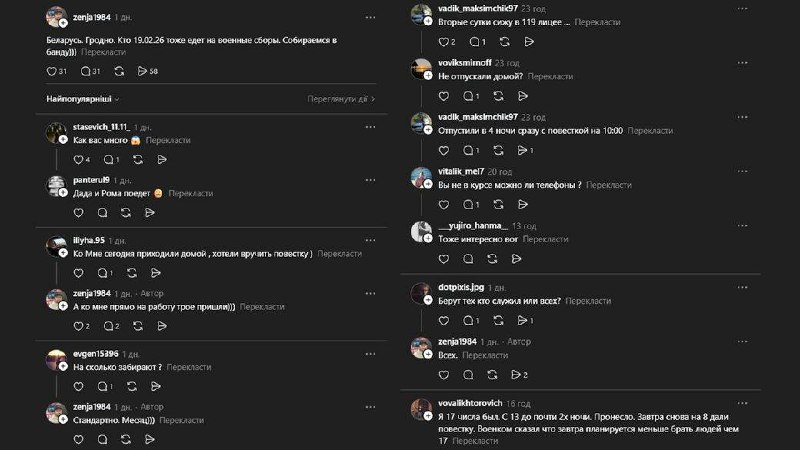 У західних областях Білорусі розпочалася масштабна кампанія з розсилки повісток чоловікам призовного віку. За повідомленнями місцевих мешканців та моніторингових груп, військовозобов'язаних викликають до територіальних центрів комплектування під приводом «планової перевірки облікових даних».