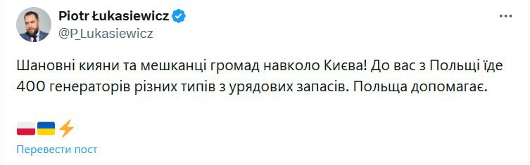 - Збір коштів на генератори для Києва у Польщі було закрито в рекордні терміни.
