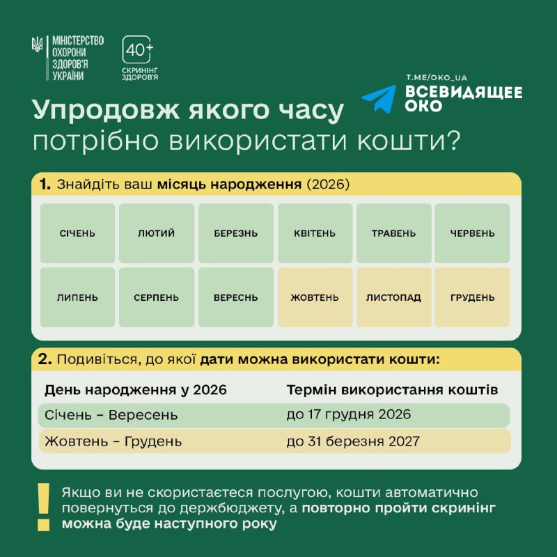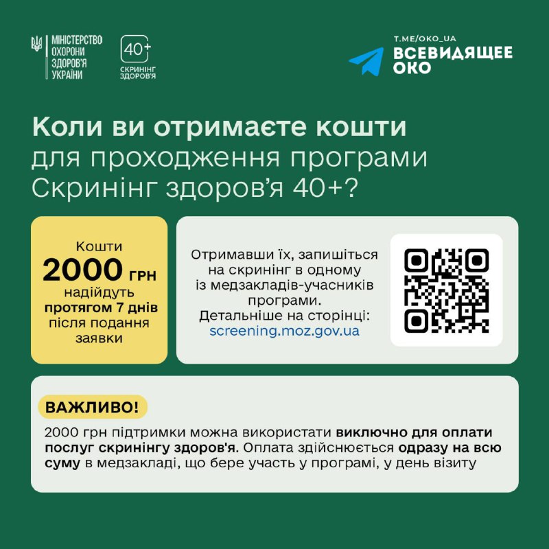 - ❗️Офіційно: сьогодні стартувала програма «Скринінг...Всевидящее ОКО: Україна • 1/31/2026, 06:39 AM
