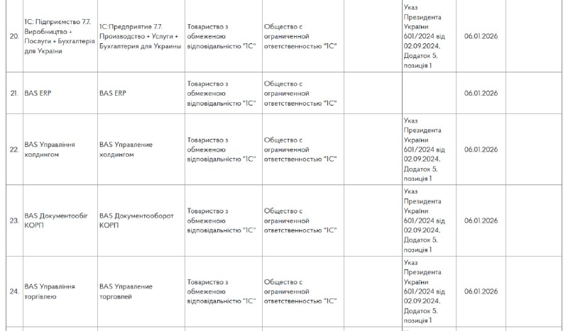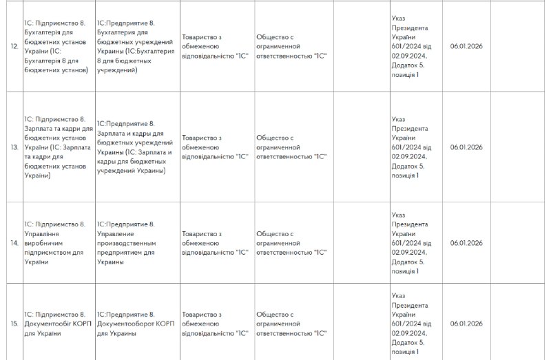 - Заборона стосується також інших російських ERP-систем та бухгалтерського софту.
