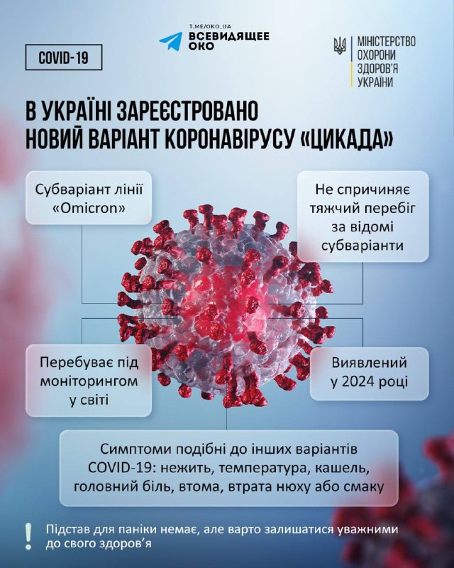 В Україні виявили першого пацієнта, інфікованого новим субваріантом коронавірусу, який отримав назву «Цикада». Цей варіант є черговим відгалуженням штаму Omicron, який продовжує мутувати та поширюватися світом. Фахівці зазначають, що вірус постійно адаптується, що потребує регулярного моніторингу епідеміологічної ситуації.