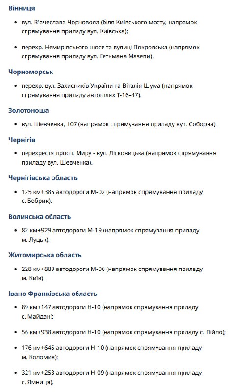 - Камери розташовані на критичних ділянках доріг державного значення