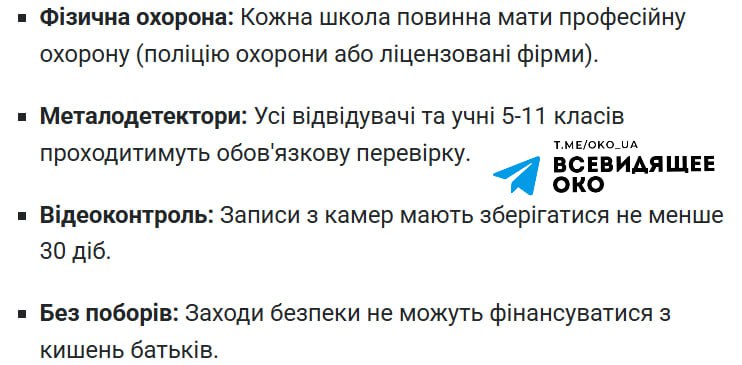 - Використання металодетекторів для перевірки учнів та відвідувачів