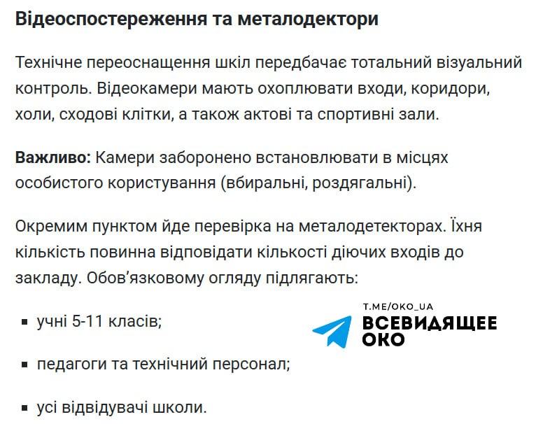 Одним із ключових нововведень стане використання металодетекторів та сканерів на входах до шкіл. Це дозволить запобігти пронесенню заборонених або небезпечних предметів. Окрім фізичної охорони, школи планують обладнати сучасними системами внутрішнього та зовнішнього відеоспостереження, дані з яких будуть доступні правоохоронним органам у разі потреби.
