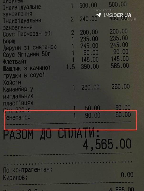 Через постійні відключення електроенергії український бізнес змушений адаптуватися до нових економічних реалій. Власники кафе та ресторанів почали впроваджувати так званий «збір за генератор», який автоматично додається до рахунку клієнта. Сума зазвичай становить фіксований відсоток або окрему плату за кожну годину перебування чи замовлення.