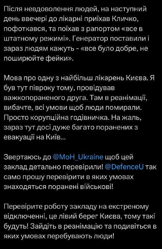 Керівник ОП демонструє контроль за відновленням критичних медичних об'єктів.