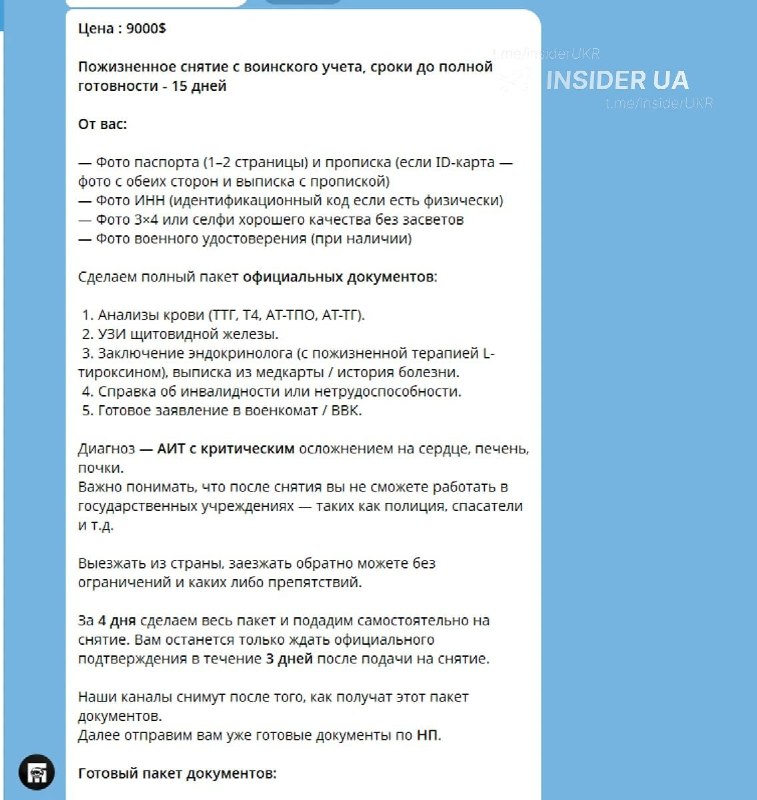 - ⚡️"Пожизненное" снятие с учета ТЦК стоит $9 тыс, "...INSIDER UA • 4/6/2026, 10:07 AM