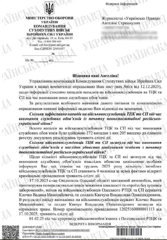 З початку війни в Україні зафіксовано 272 напади на територіальні центри комплектування