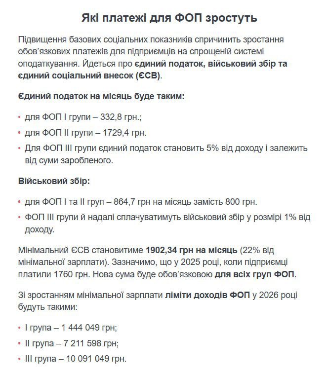 - Підвищення платежів для ФОП стартує з 1 січня