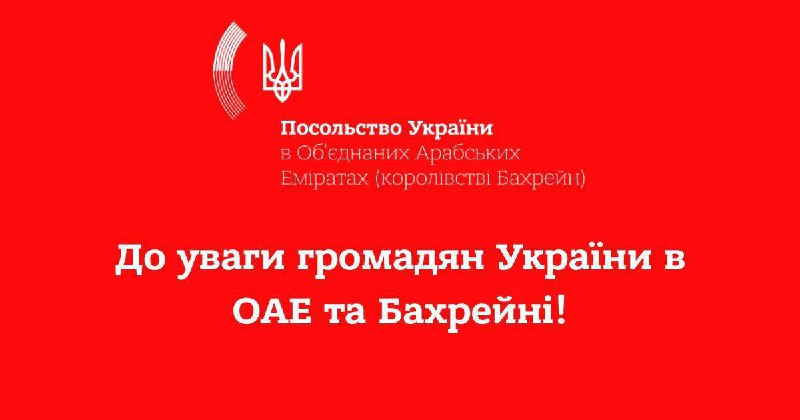 Дипломатичне представництво України в Об'єднаних Арабських Еміратах звернулося до своїх громадян, які наразі перебувають на території ОАЕ та Бахрейну. Основною метою звернення є збір актуальної інформації про місцеперебування та контактні дані українців у регіоні.