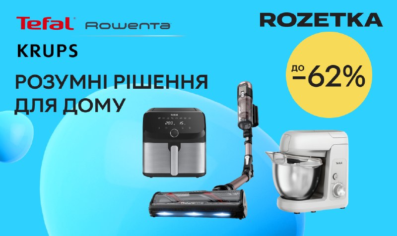В українських ритейлерах стартували масштабні святкові розпродажі до Великодня. Покупцям пропонують значні знижки до 62% на продукцію провідних брендів, таких як Tefal, Krups та Rowenta.