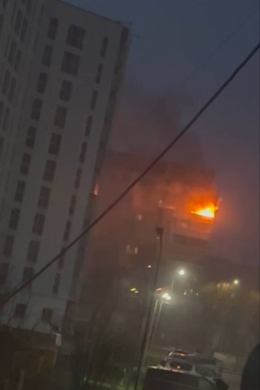 Внаслідок чергового ворожого обстрілу зафіксовано пряме влучання у житлову багатоповерхівку. Будівля повністю охоплена вогнем, на місці працюють рятувальні служби для локалізації пожежі та пошуку постраждалих.
