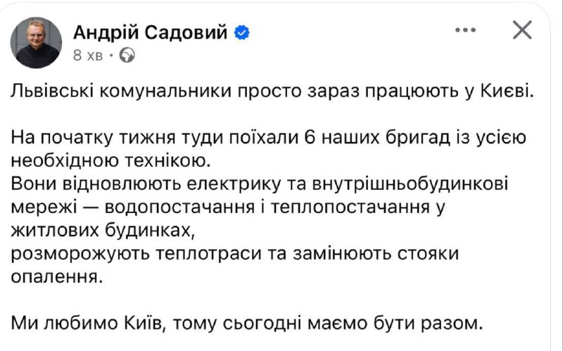 Мер Львова Андрій Садовий повідомив про критичну ситуацію з прибиранням міста від снігу. Проблеми виникли через відключення електроенергії у комунальних установах за борги, що заблокувало роботу частини техніки та інфраструктури.