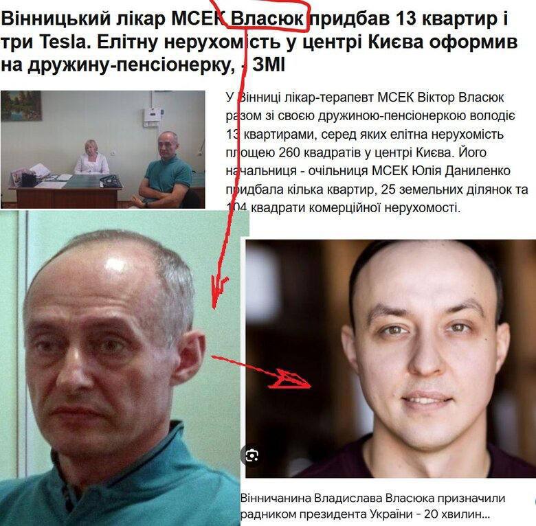 У мережі оприлюднено інформацію про родину Власюків, де батько працює лікарем у МСЕК, а син обіймає посаду в Офісі Президента. Журналісти вказують на можливі корупційні зв'язки та конфлікт інтересів у діяльності посадовців.
