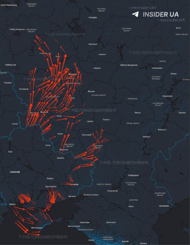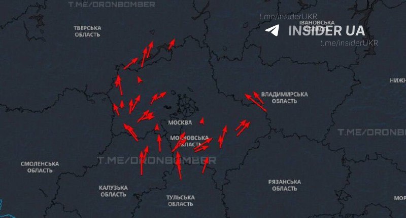 У ніч на суботу територія Російської Федерації, зокрема Москва та область, зазнала масованої атаки ударних безпілотників. Російські моніторингові ресурси повідомляють про роботу систем ППО та численні вибухи в різних районах.