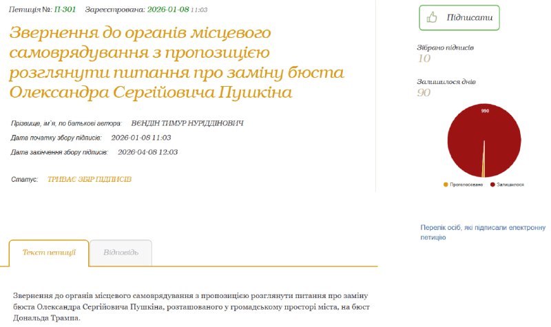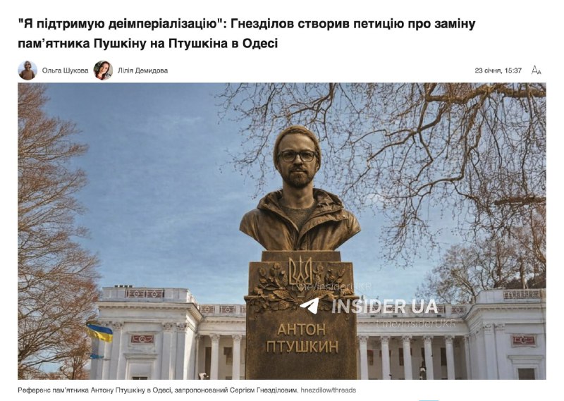 В Одесі розпочався активний збір підписів за заміну бюста російському поету Олександру Пушкіну. Замість нього містяни пропонують встановити пам'ятник видатному британському державному діячу Борису Джонсону.