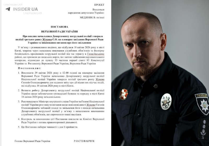 У Верховній Раді України ініціювали збір підписів за звільнення начальника Департаменту патрульної поліції Євгенія Жукова. Причини такої ініціативи наразі офіційно не розголошуються, проте це викликало значний резонанс у політичних колах.