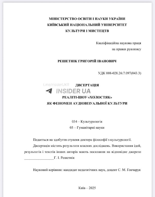 Популярний український телеведучий Григорій Решетнік офіційно став кандидатом наук. Він успішно захистив дисертацію обсягом 217 сторінок, присвячену питанням культури та мистецтва.