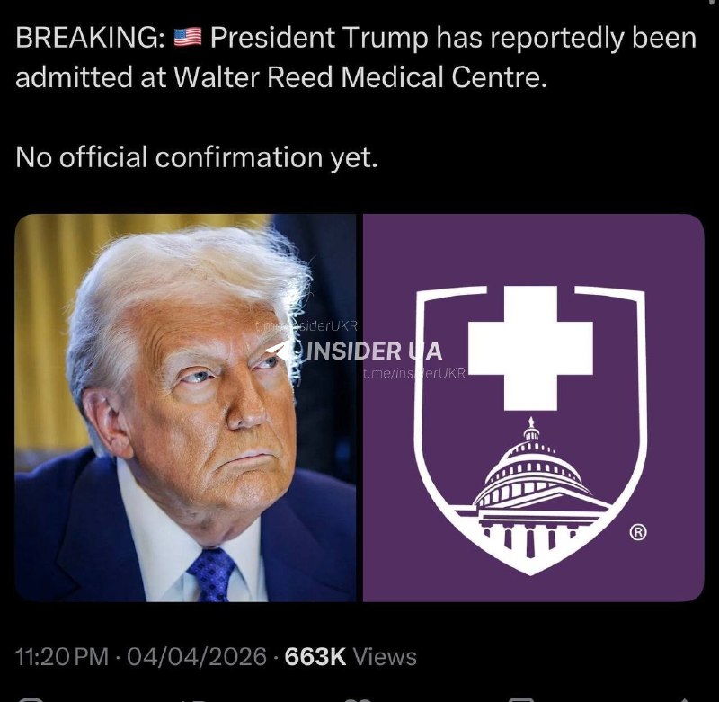У соціальних мережах та медіа поширюється непідтверджена інформація про раптову госпіталізацію колишнього президента США Дональда Трампа. Наразі офіційні представники політика не надали жодних коментарів, що підсилює хвилю припущень щодо стану його здоров'я.